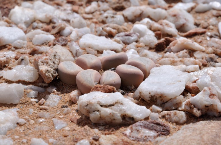 "살아있는 돌"이라 불리는 것은 우연이 아니다: 다른 식물들이 살아남을 수 없는 남서아프리카의 돌사막에서 Lithops이 발견된다.