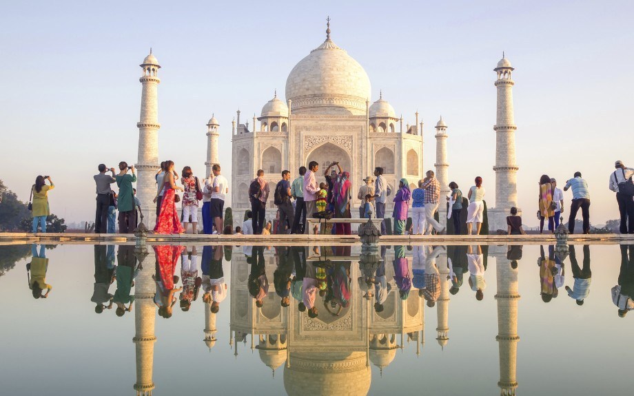 One of the seven wonders of the world, the white-marble building, changes color throughout the day, from pink in the morning, milky white in the evening and gold in the moonlight.