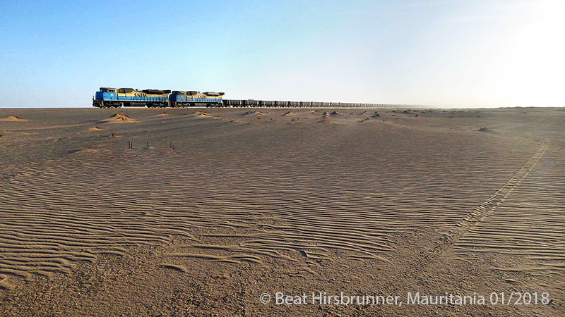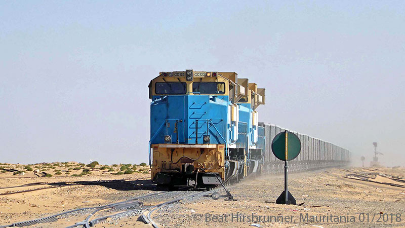 1963년부터 Mauritania의 길이 2.5 km의 기차는 사하라 사막을 가로질러 704km거리를 철광석과 승객을 운송했다.
