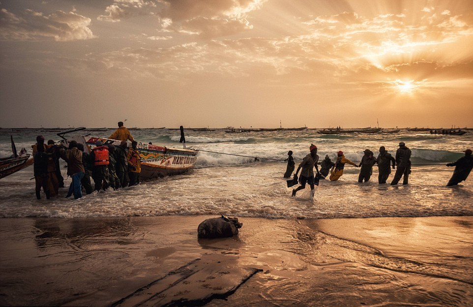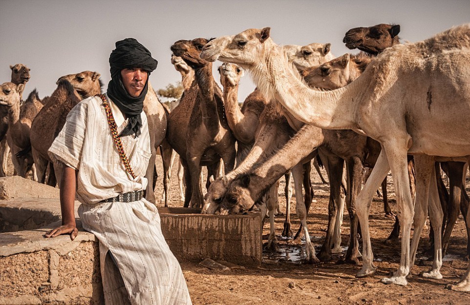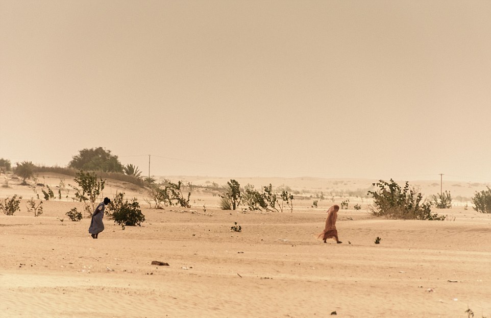 Mauritania의 수도 Nouakchott로 가기때문에 많은 Mauritania인들이 과밀한 여객운송을 포기하고 화물차에서“2등석”을