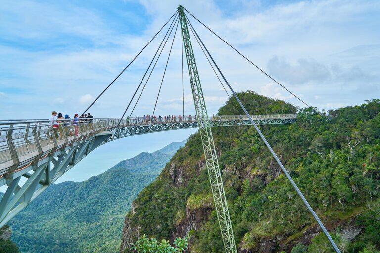 말레이시아 Langkawi섬의 산악 숲을 따라 구불구불한 Langkawi스카이 브리지는 태국의 Tarutao 섬까지 숨막히는 전경을