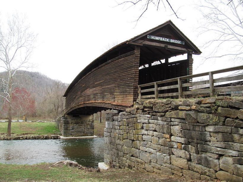 Covington에서 서쪽으로 5km 떨어진 Allegany카운티의 Humpback Bridge는 버지니아에 서 있는 7개의 덮인 다리 중 가장 오래된