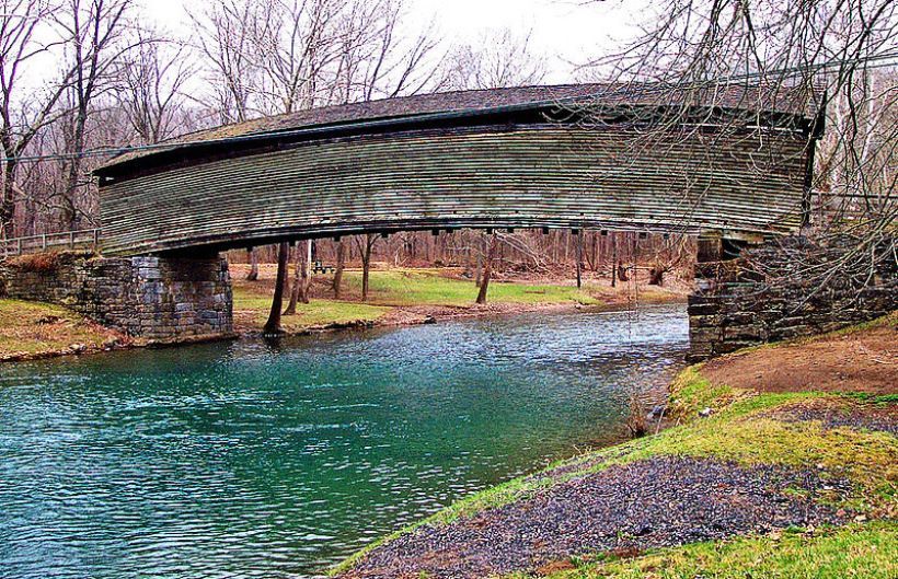 그것은 또한 미국에서 단지 두개의 곡선으로 덮힌 나무 다리 중 하나다.