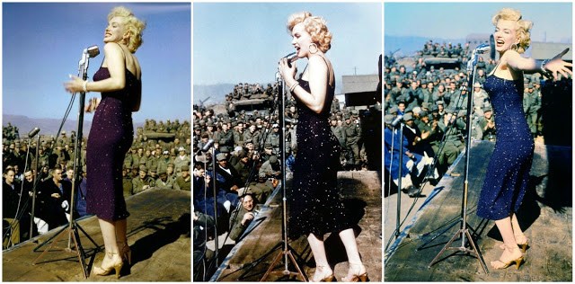 한국에서 노래하는 Marilyn Monroe의 매혹적인 컬러 사진