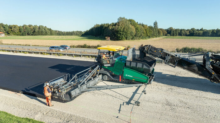 4차선 Autobahn에 아스팔트를 포장 할 수 있다. SUPER 3000-3은 시간당 1,800톤의 믹스, 포장 폭 18m로, 유압 변조