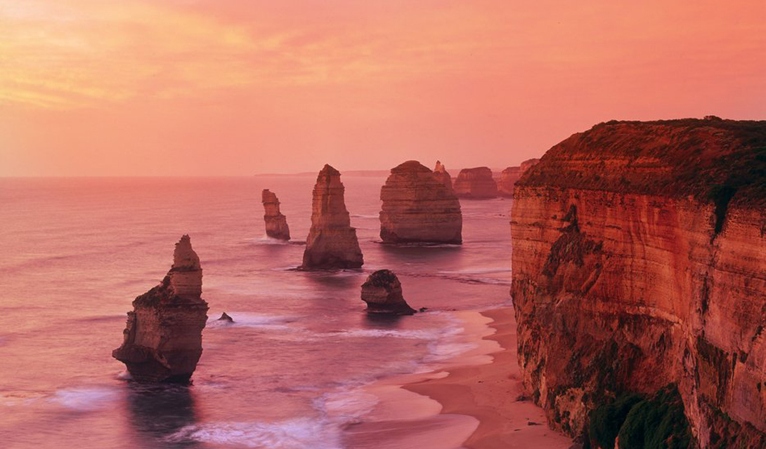 Great Ocean Road는 해안선을 지배하는 높은 석회암 덩어리 때문에 비공식적으로 "12 사도"라는 이름으로 명명되었다.