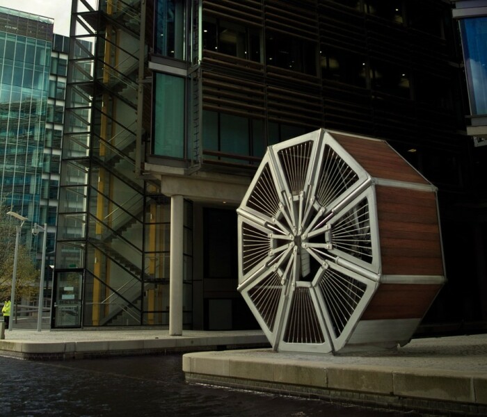 영국의 수도의 시장 광장 Fan Bridge는 성공적으로 엔지니어링 구조와 운동 조각의 속성을 "교차"하는 놀라운