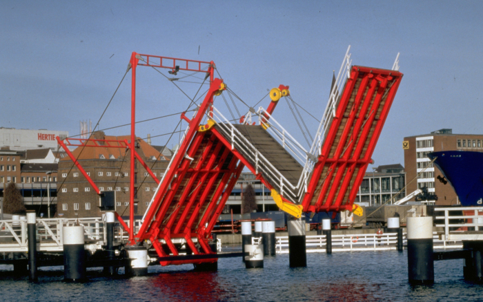 Kiel Fjord해안을 연결하는 다리는 디자인면에서 인상적이지 않으며, 처음에는 주민들이 이 구조에 매우 불만을 품게