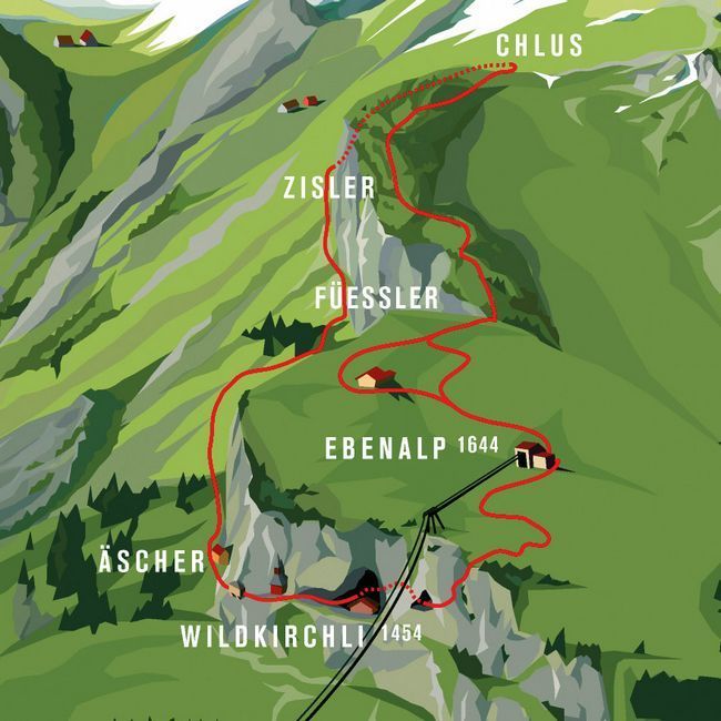 Berggasthaus Aescher에서는 가장 그림 같은 주변 환경을 산책하며 원시인의 유적지와 은둔자의 집을 방문하여 깊은 동굴로 내려가거나 높은 산의 호수에서 휴식을 취하며 Inn Aescher산을 등산한다. 1시간 반~ 3시간 동안 걷기에 쉽거나 어려운 루트를 선택할 수 있다.