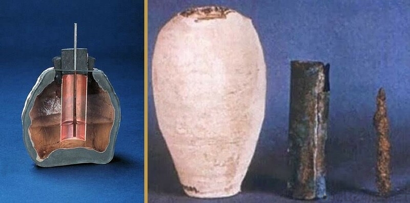 그러나 1936년 고고학자들은 원시 배터리처럼 생긴 유물을 발견했다. 그들은 세라믹 냄비, 구리 튜브 및 철 막대로 구성되었다.