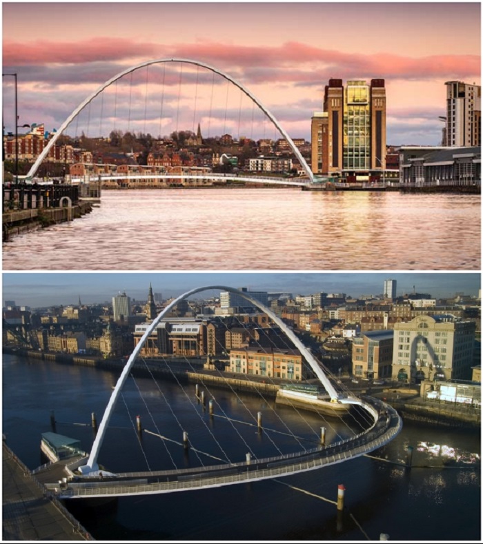 Gateshead 와 Newcastle-upon-Tyne의 도시를 연결하기 위해 Tyne강을 가로지르는 영국에서 일종의 보행자 다리가 등장했다.