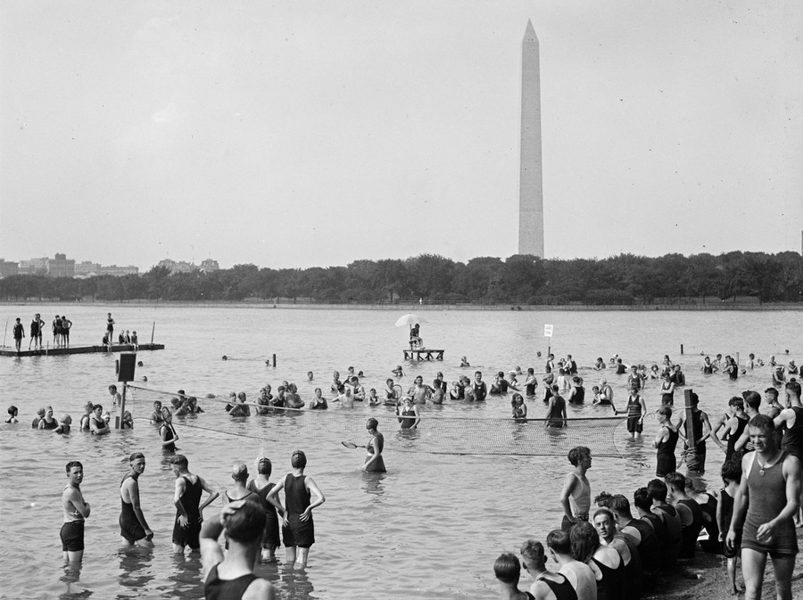People play a game of water tennis in Washington, D.C., in August 1921