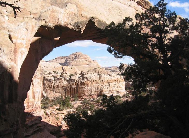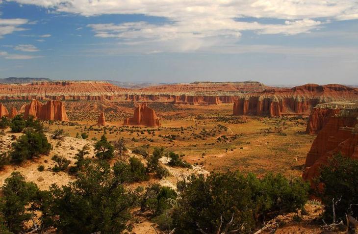 Utah주의 중앙 부분에는 Capitol Reef National Park(Capitol Reef)이 있는데, 지난 세기의 20년대에 공원 지역의 개발을 옹호한 지역 애호가들로부터 "Wayne's Wonderland"라는 별명을 얻었다.