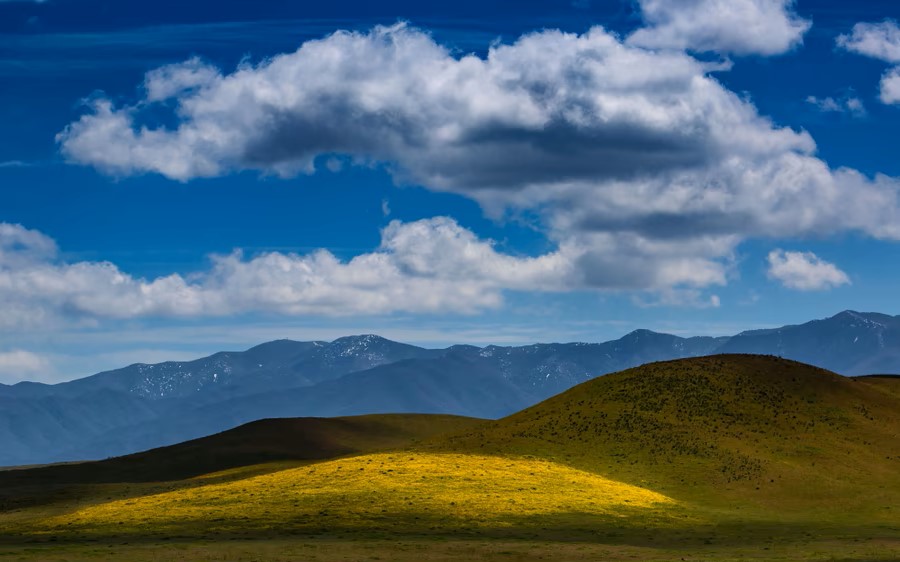 12.A view of blooming flowers on hills near Cuyama, California, on March 26, 2023.