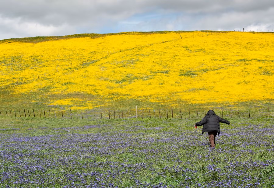 5.Hillsides and pastures are covered in a carpet of flowers in Carrizo Plain National Monument, California, on March 26, 2023.