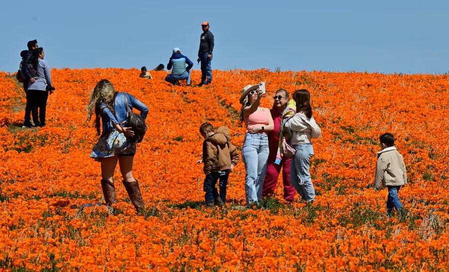 11.People visit the Antelope Valley California Poppy Reserve on April 6, 2023