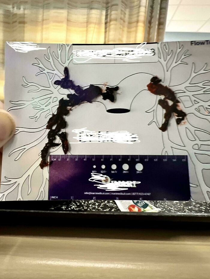 39.새로운 절차로 PE 제거. 지난 주에 그들이 내 사타구니를 통해 내 폐에서 빨아 들인 것은 다음과 같다.