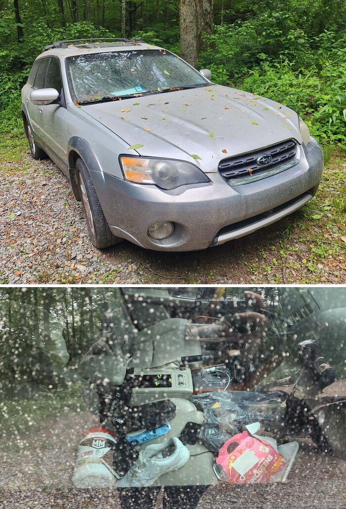 37.Appalachian Trail근처에 2024년 메릴랜드 태그가 만료된 버려진 스바루가 있으며 내부에는 개인 물품이 남아 있다.