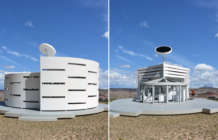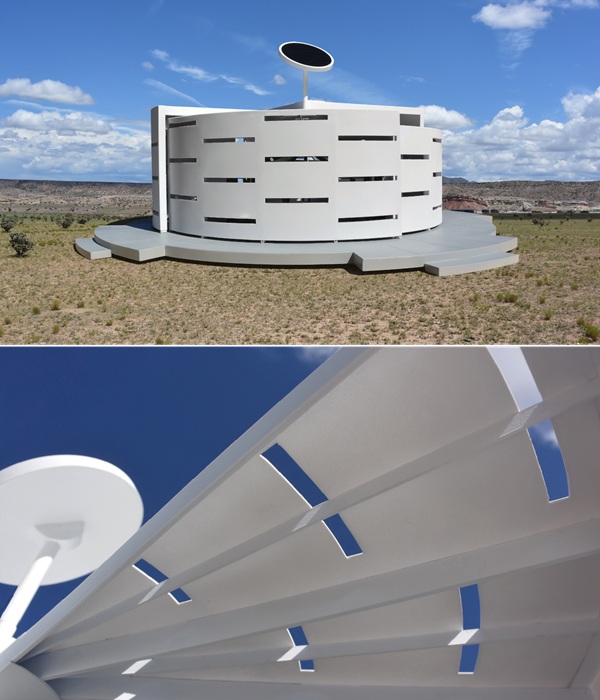 구조물이다. 전체 구조물은 구조물 자체처럼 원형으로 디자인된 넓은 나무 데크에 고정되어 있다. 중앙 코어는 정적인 생활 공간인 반면, 곡면 패널은