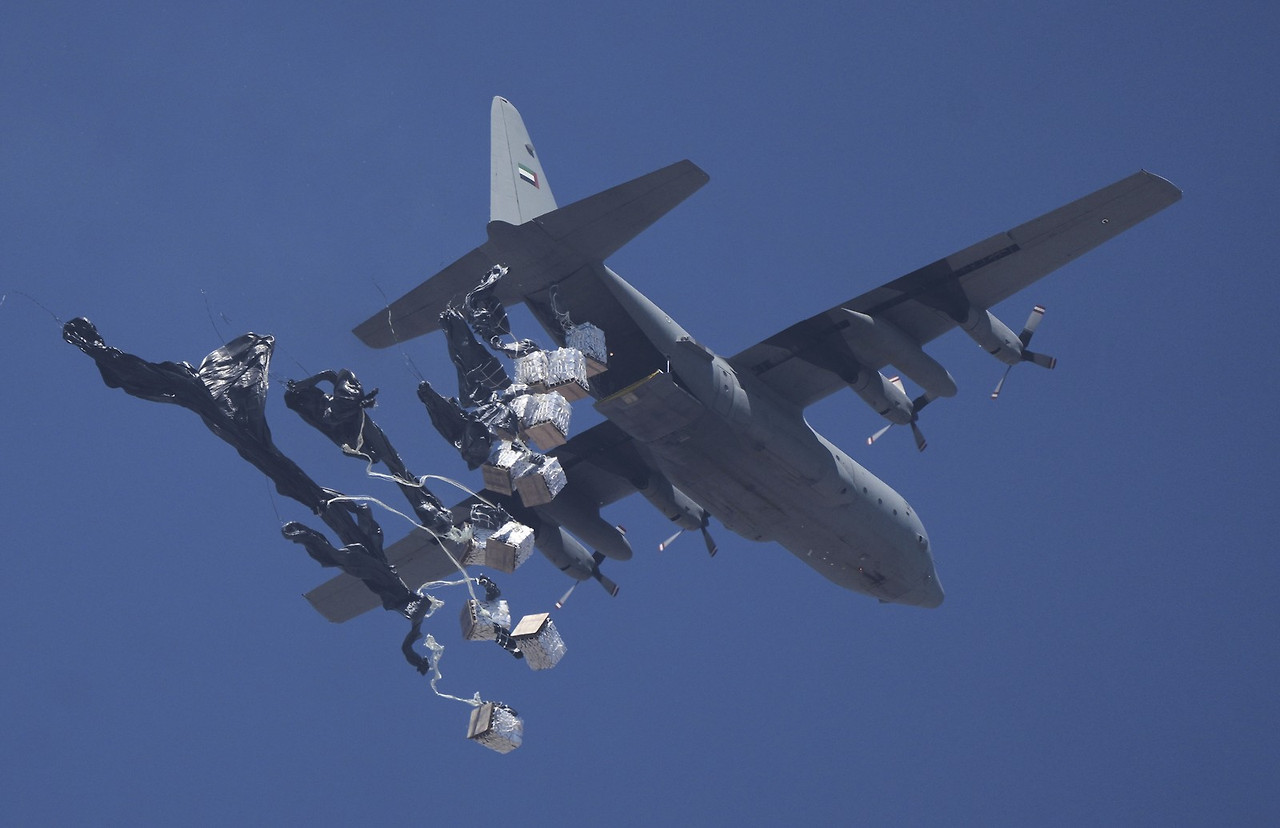 3. 2025년 7월 27일 가자시티 상공에서 팔레스타인인들에게 인도주의적 지원품이 공중 투하되었다.