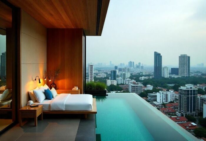만한 가치가 있다. 가장 주목할 만한 점은 700제곱미터 규모의 스위트룸과 조이스 왕이 디자인한 시그니처 레스토랑이다. 스위트룸 외에도, 호텔에는 공용 라운지, 바, 레스토랑, 무도회장, 대규모 및 더 사적인 이벤트를 위한 방, 그리고 연회 및 회의 홀도 갖춰질 예정이다. 참고로, 바 스튜디오가 디자인한 바와 레스토랑의 인테리어는 전체 호텔 단지의 건축적 외관을 보완하며, 그 중 주요 프리미엄 레스토랑은 지붕 위의 로비와 연결되어 향기로운 정원으로 탈바꿈한다.