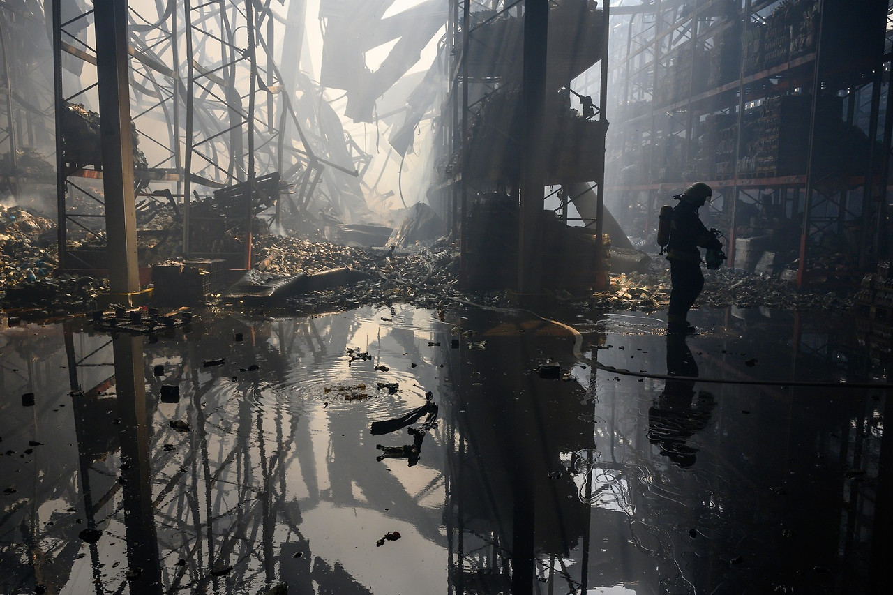 1. 우크라이나 소방관들이 2025년 7월 30일 우크라이나 하르키우에서 러시아 미사일 두 발이 경비원 1명을 사망시킨 공격으로 발생한 식량 창고 화재와 싸우고 있다. 러시아가 우크라이나를 침공한 지 3년반만에 도시 중심가에 대한 일일 공중 폭격이 급증하는 가운데 러시아는 우크라이나에 대한 미사일과 드론 공격을 강화하여 하룻밤에 700발 이상을 발사했으며 일반적으로 민간인 목표물을 대상으로 발사했다.