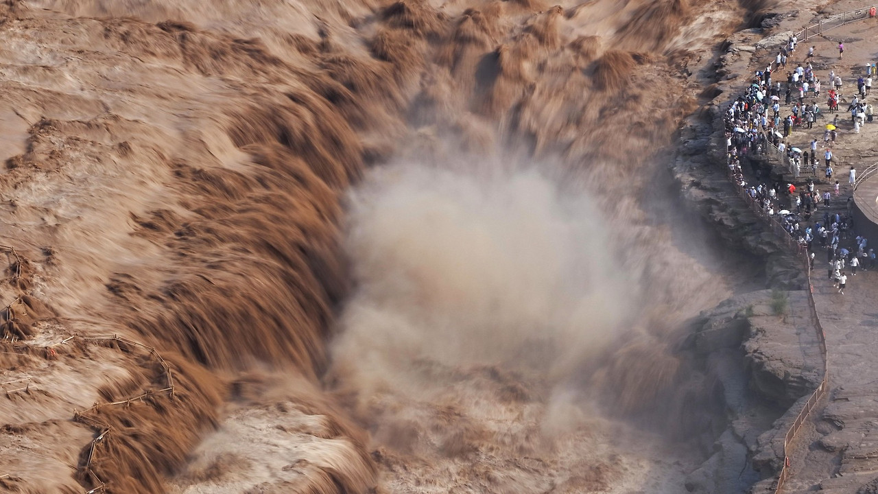 13. 2025년 7월 27일, 중국 산시성 기시안 카운티의 황하에 있는 후커 폭포를 사람들이 방문하고 있다.