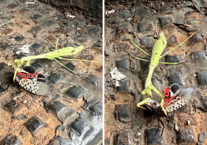 9.기도하는 사마귀가 침입종 랜턴 나방으로부터 사람을 구하는 역할을 하고 있다.