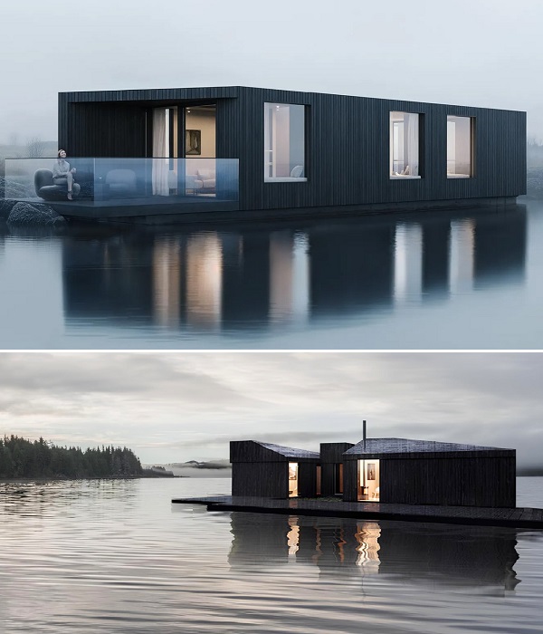 The Dorset Lake의 Silver Lake houseboat는 물 위에서 스칸디나비아 미니멀리즘을 실현한다. 이는 플로팅 건축물의 디자인과 건설을 전문으로 하는 두 회사, Koto와 Waterpod의 전문가들의 노력 덕분에 가능해졌다. 물의 표면의 엄격한 절제와 고요함이 얽혀져 있어 특별한 분위기를 만드는 데 중요한 역할을 한다. 그리고 경치 좋은 환경 또한 그렇다.