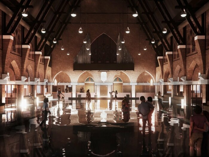 물론, 이러한 야심 찬 프로젝트는 기존 교회 내부에 상당한 변화를 요구할 것이다. 기존 바닥을 제거하고 거대한 물탱크를 수용하기 위해 크게 심화시키는 것부터 시작하여, 새로운 시설의 원활한 운영을 보장하기 위한 다양한 시스템을 구현해야 한다. 역사적인 건물의 요소들도 재사용될 것이다.