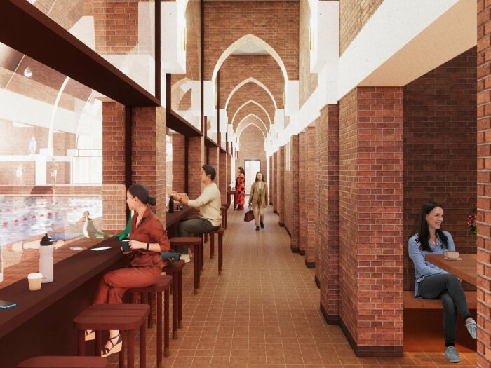 디자인은 예전의 종교 건물이 사회적 매력의 장소로 남을 수 있도록 보장하며, 단지 그것이 도시 주민들과 이색적인 역사 마을의 손님들이 더 많이 요구하는 현대적인 공간으로 기능할 것이다.