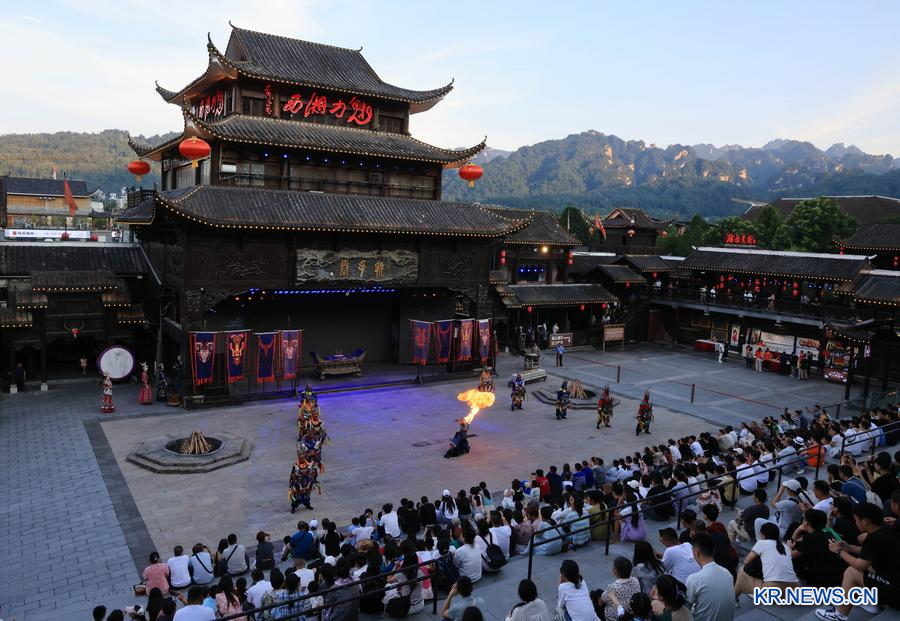 20.후베이(湖北)성 쉬안언(宣恩)현 궁수이허(貢水河) 인근에서 수상화호(水上火壺) 공연