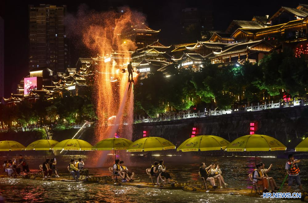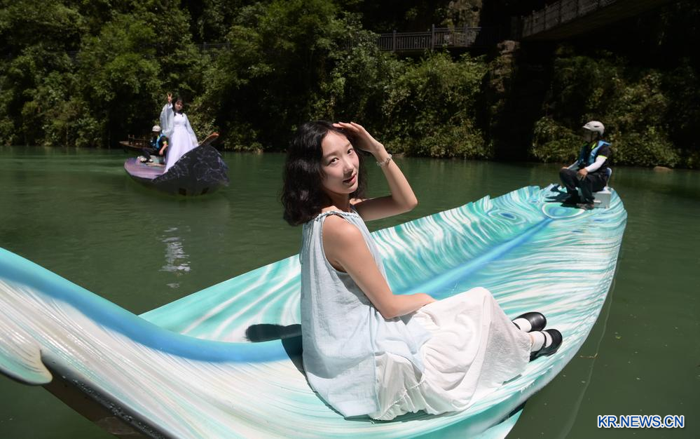 9.후베이(湖北)성 언스(恩施) 투자(土家)족먀오(苗)족자치주 핑산여유관광구가 여름 휴가 성수기를 맞아 깃털배를 활용