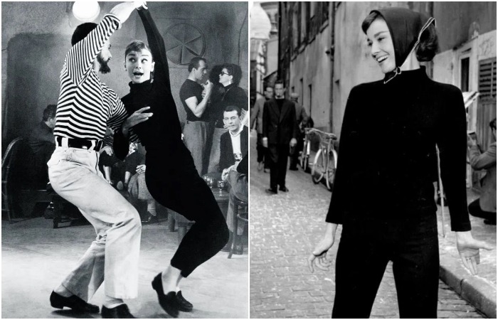 치마, 스키니 진, 바지, 심지어 슬립 드레스까지 – 검은 터틀넥과 잘 어울리지 않을 의류 아이템이 없는 것 같다. 오드리 헵번은 영화 '재밌는 얼굴'에서 조 스톡턴 역할을 맡으면서 그것을 입고 놀랍도록 보였다. 아마도 이 이미지를 가진 후, 평범했던 터틀넥이 그림자에서 벗어나 패션 올림푸스에서 명예로운 자리를 차지하게 되었던 것 같다. 헵번은 일상생활과 사진 촬영에서 자주 그것을 착용하며, 이렇게 눈에 띄지 않는 의류 아이템조차도 이미지를