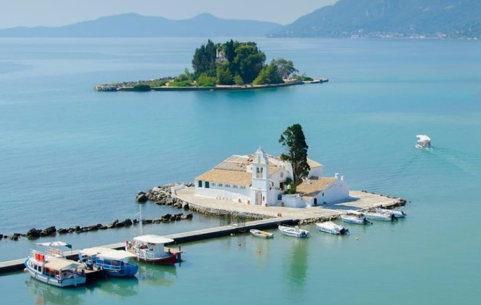 작은 섬 Pontikonisi(또는 쥐섬)은 인류 역사에 흔적을 남긴 그리스에서 가장 유명한 섬 중 하나다. 고대 그리스인들조차 포세이돈이 오디세우스의 배를 바위로 변하게 했다고 믿었고, 이후 그곳은 고대 교회 중 하나인 Byzantine Pantocrator성당이 세워진 기독교 성역이 되었다. 그리고 나중에 오늘날까지도 활동 중인 작은 수도원이 생겼다. 순례자들과 관광객들은 보안 요원과 함께하며, 자연으로 둘러싸인 작은 섬을 돌아다니며 평화롭고 아름다운 경치를 즐길 수 있는 기회를 가진다. 그곳은 보호 구역으로 지정되어 있다.