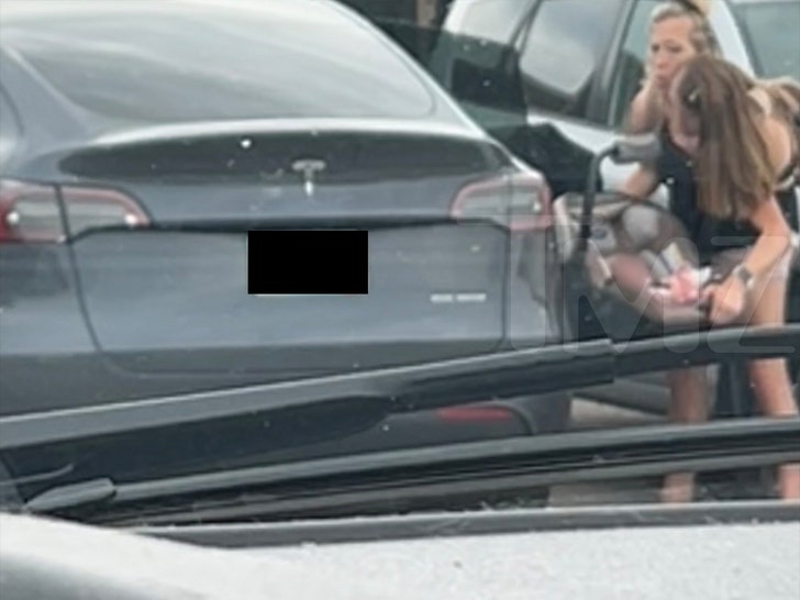 그들은 검은색 테슬라에 아기 카시트를 넣고 있었다.