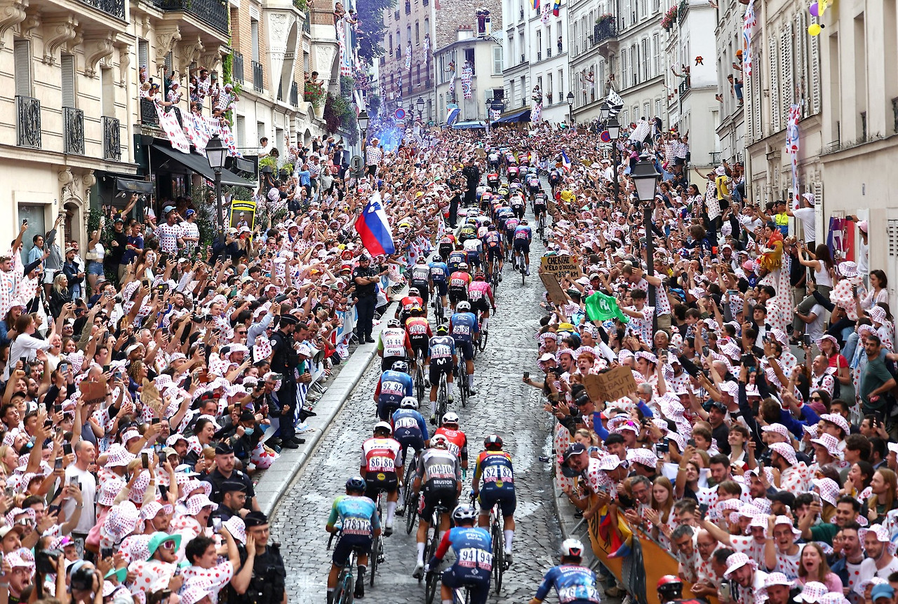 3. 2025년 7월 27일 파리에서 열린 투르 드 프랑스 스테이지 21 동안 관중들이 라이더들에게 환호한다.