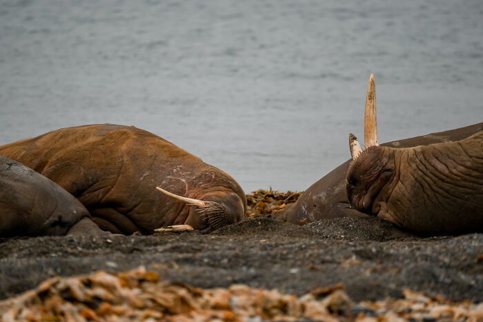 그들을 사진으로 찍는 것은 매우 어렵다. 500mm 렌즈를 사용하더라도, 여기 보이는 사진들은 대폭 크롭되었다.하지만 우리의 운은 extraordinary했다. 81°40′ 북위에서 정지하고 있을 때, 호기심 많은 북극곰들이 우리 배에 접근했다! 북극 야생 동물 지침을 완전히 준수하며 그들을 방해하지 않고 가까이에서 보는 경험은 정말 잊을 수 없는 일이었다.