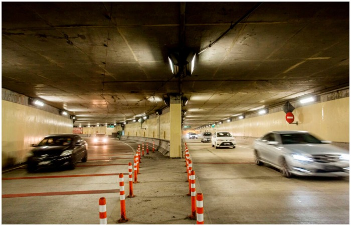 정상적인 조건에서는 이 터널이 교통을 위해 사용되어 도시를 통과하는 차량을 위한 더 빠르고 효율적인 경로를 제공한다.