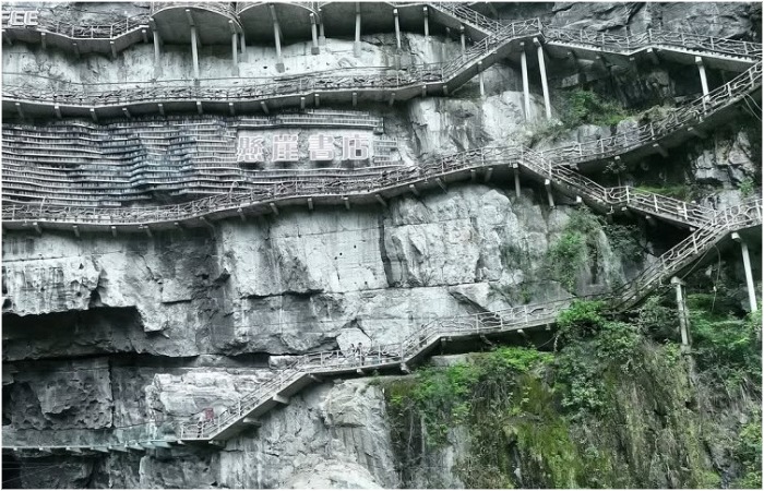 협곡 300m높이 바위 절벽에 지은 중국의 경이로운 현애(懸崖)서점 개장 본문