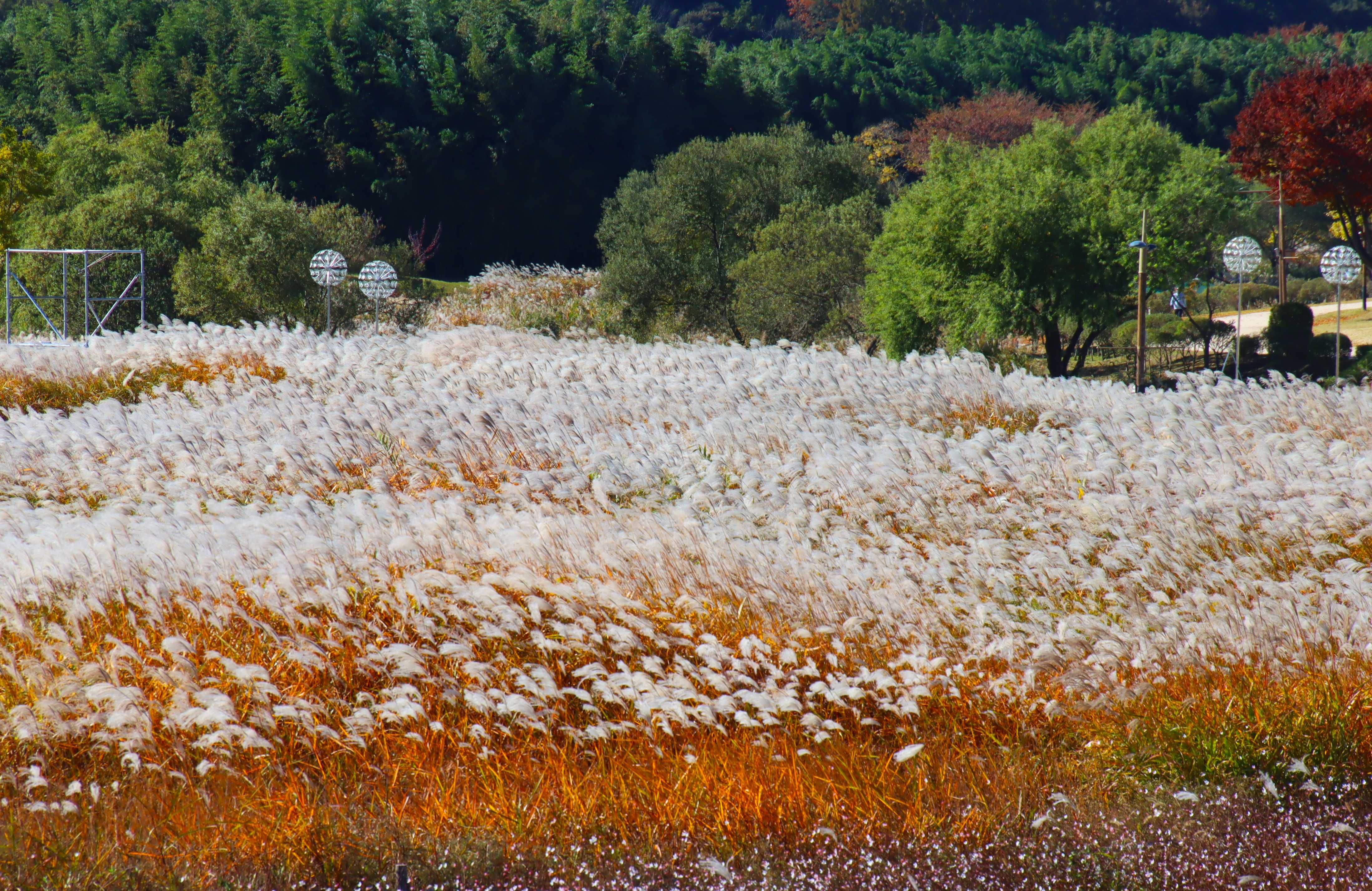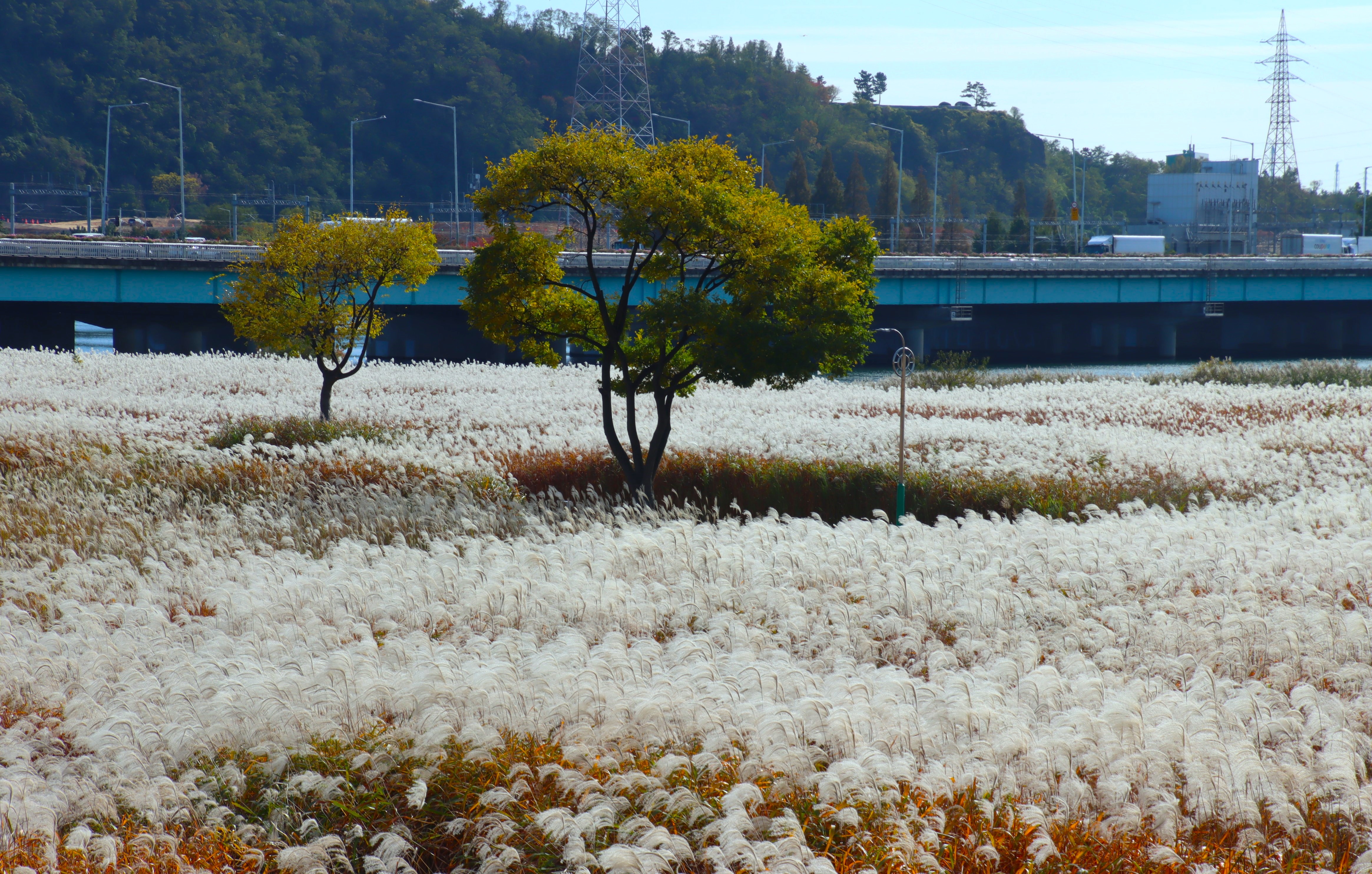 태화강 하구의 <명촌교>와 동해선 철로변의 하단 동서 고수부지에 조성한 넓은 억새숲은 식생이 좋아 햇살을 받아 반짝이는 으악새의 물결이 하늘대며