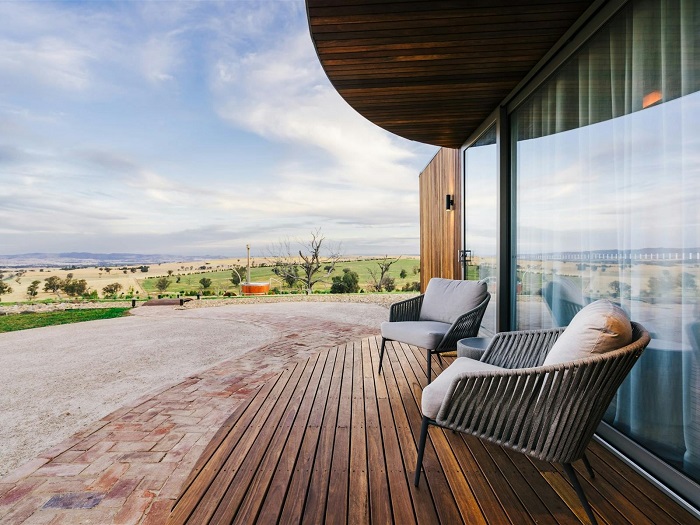 변치 않는 아름다움을 결합한다. 손님들은 나무로 데운 온수 욕조에서 휴식을 취하거나, 바비큐를 즐기거나, 구릉이 내려다보이는 테라스/발코니에서