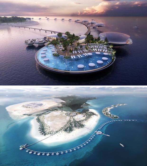 • Sindalah Island은 홍해에 위치한 840,000㎡ 규모의 럭셔리 섬 리조트로, 고급 호텔, 빌라, 서비스 아파트, 골프장, 스포츠 클럽, 마리나를 갖추고 있다. 요트 클럽, 스파, 레스토랑, 고급 매장, 비치 클럽도 현장에 있다. 이 프로젝트의 독특한 특징은 섬 고유의 색상 팔레트에서 영감을 받은 자연 소재를 사용하는 것으로, 예술적 요소의 창의적 결합과 자연의 다양성을 강조할 것이다.