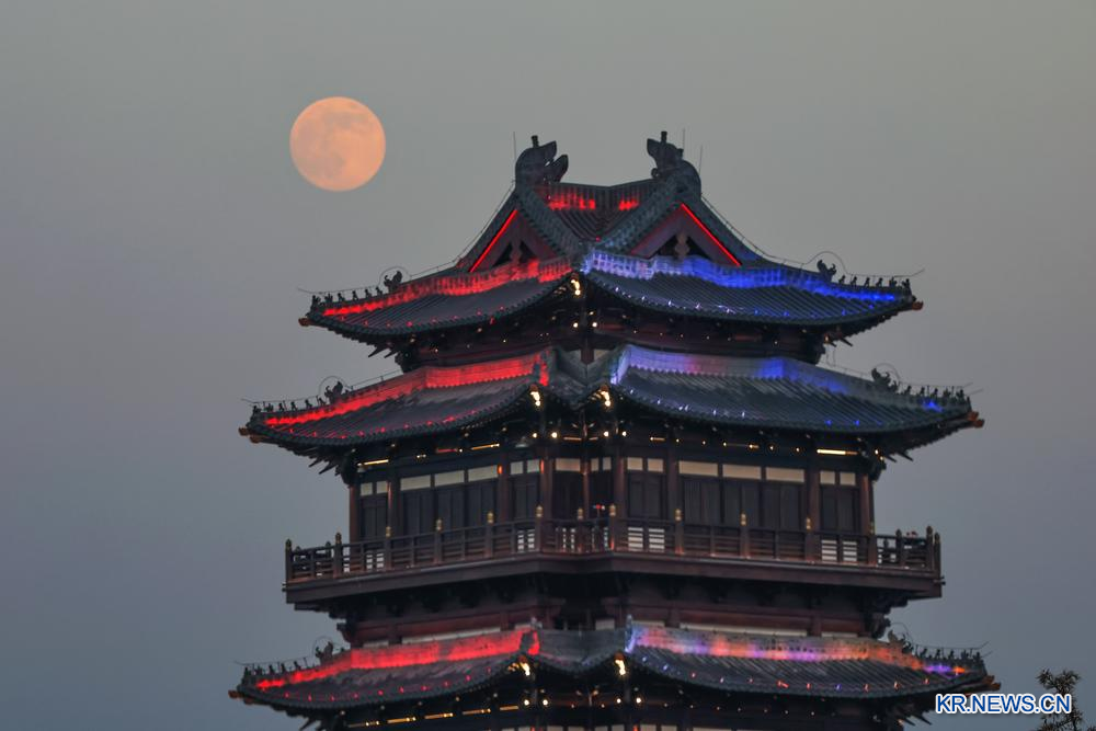 29.장쑤(江蘇)성 롄윈강(連雲港)시 위안보위안(園博園)에서 촬영한 보름달