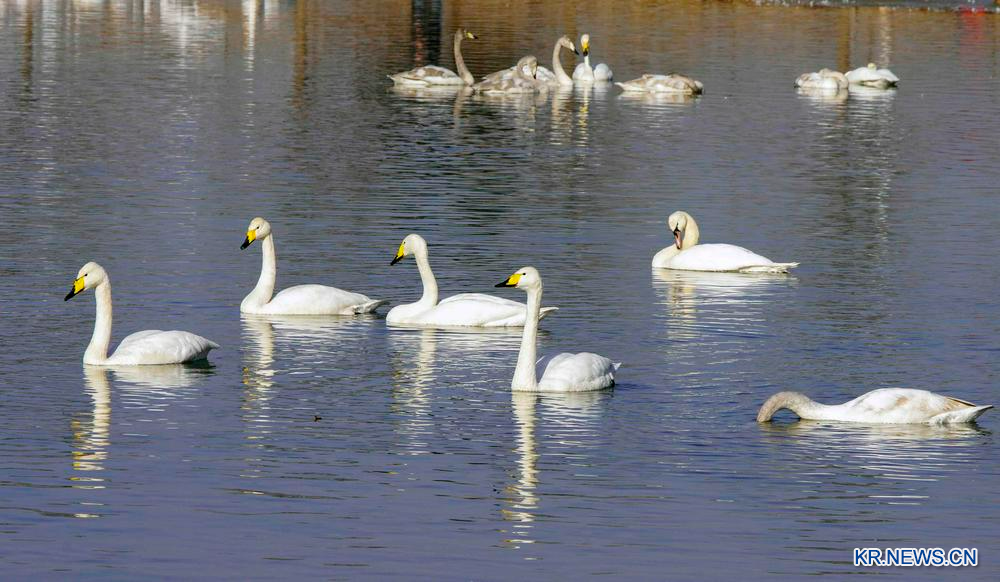 21.칭하이(青海)성 하이둥(海東)시 화룽(化隆)후이족자치현 황허(黃河) 습지에 약 100마리의 백조가 찾아왔다.