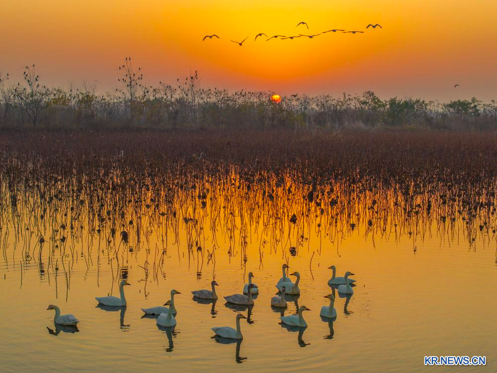 6.산시(山西)성 핑루(平陸)현 황허(黃河)습지에 월동을 위해 시베리아에서 날아온 백조들