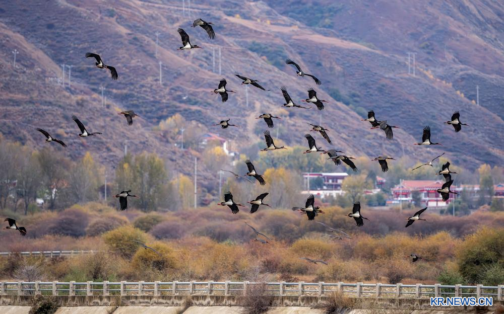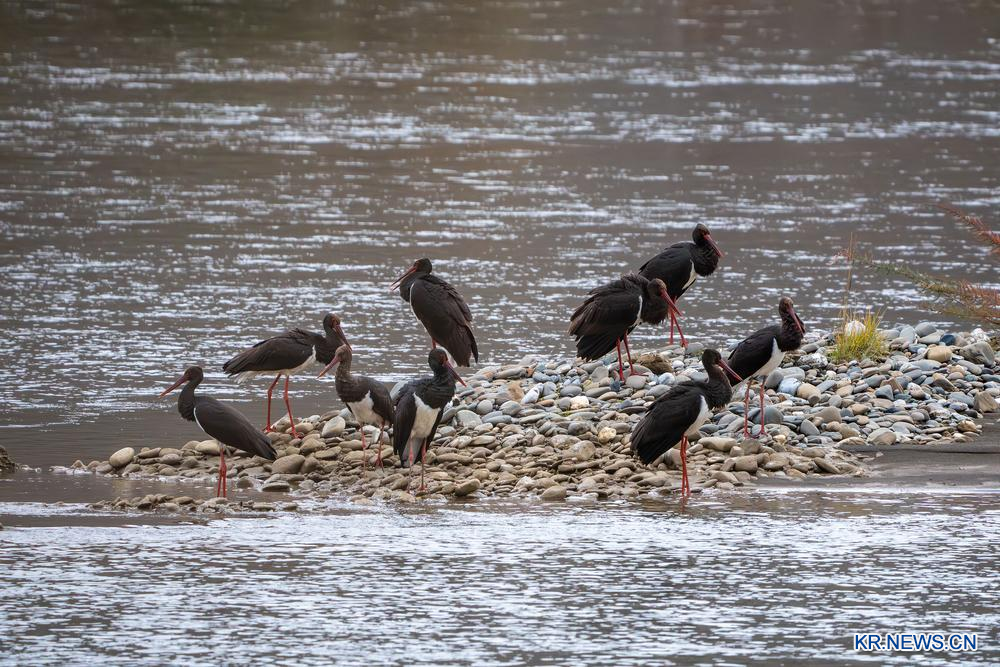 10.쓰촨(四川)성 루훠(爐霍)현 셴수이허(鮮水河) 국가습지공원을 찾은 먹황새 무리