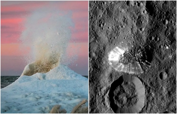 우리는 일반적으로 화산을 매우 뜨거운 것으로 생각하지만, 얼음과 연결짓지는 않았다. 이는 안타까운 일이다. 왜냐하면 이른바 냉화산(cryovolcano)이 지구뿐만 아니라 우주에도 존재하기 때문이다. 예를 들어, 북미의 오대호 지역에서 발견된다. 천문학자들은 왜성 케레스(Ceres)에서 실제 냉화산을