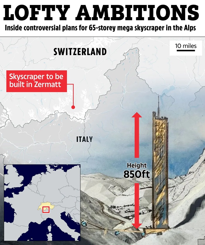 스위스 외딴 마을 한가운데에 짓기로 한 높이 260미터 skyscraper