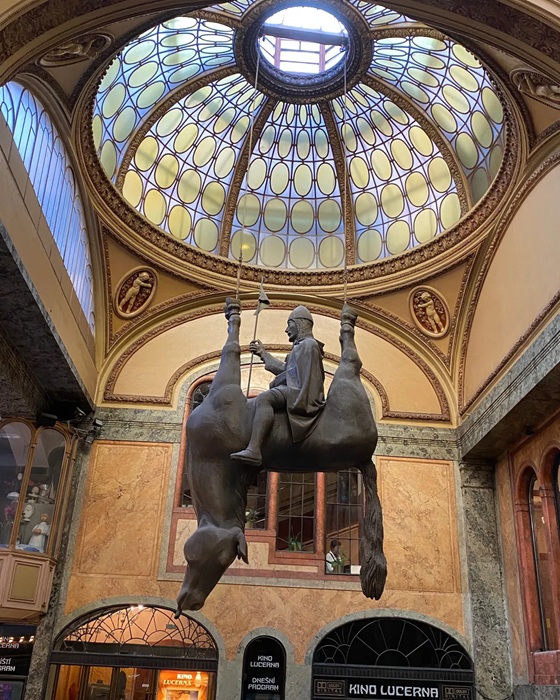프라하에는 유명한 선한 왕 St. Wenceslas(성 베드로) 기념물이 두 개 있다. 하나는 꽤 전통적이지만, 두 번째 기념물은 상당히 독특하다. 이 기념물은 Lucerna Passac 안에 있는 Wenceslas Square에서 찾을 수 있다.